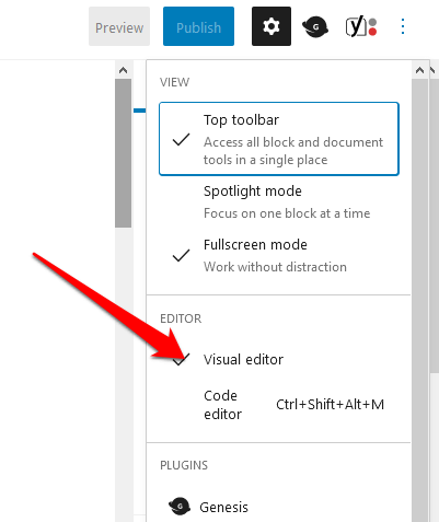2. حدد قائمة المزيد من الأدوات والخيارات ثم حدد المحرر المرئي . يجب أن تكون صفحتك الجديدة الآن نسخة مكررة من الصفحة الحالية.