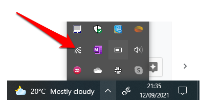 - حدد رمز الشبكة على شريط المهام.