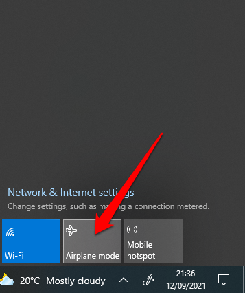 - تم تمكين وضع الطائرة على جهاز الكمبيوتر الخاص بك.