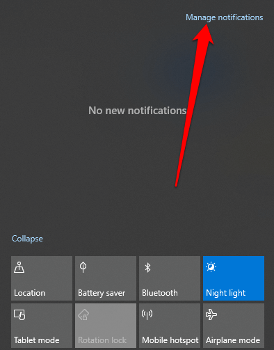 - بعد ذلك ، حدد إدارة الإخطارات .
