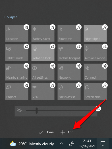 - افتح مركز العمل بالضغط على Windows Key + A على لوحة المفاتيح.