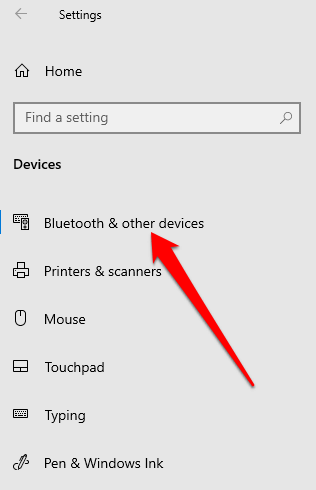 - حدد Bluetooth والأجهزة الأخرى .