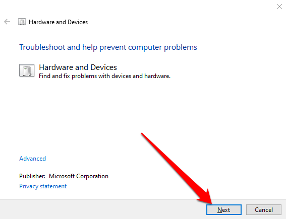 استخدم مستكشف أخطاء الأجهزة والأجهزة