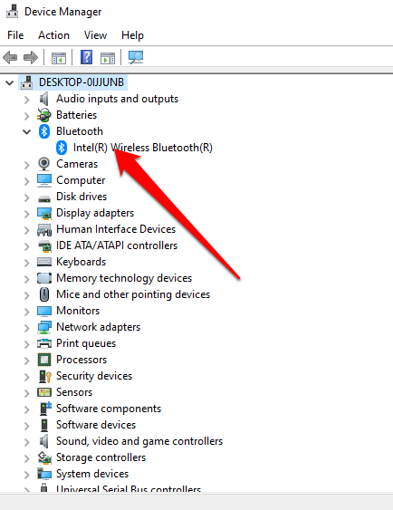 - تحقق مما إذا كان هناك قسم Bluetooth في إدارة الأجهزة. إذا رأيت واحدًا ، فحدده لتوسيع القسم وتحقق مما إذا كان هناك محول (محولات) Bluetooth مدرجة تحته.