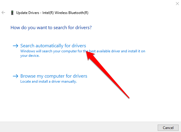 ملاحظة : إذا لم يعثر Windows على أحدث برنامج تشغيل Bluetooth ، فتحقق من موقع الويب الرسمي للشركة المصنعة لجهاز الكمبيوتر الخاص بك واحصل على برامج التشغيل من هناك. إذا حصلت على ملف قابل للتنفيذ (.exe) ، فقم بتشغيل برامج التشغيل وتثبيتها من هذا الملف.