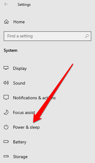 - بعد ذلك ، حدد الطاقة والنوم .