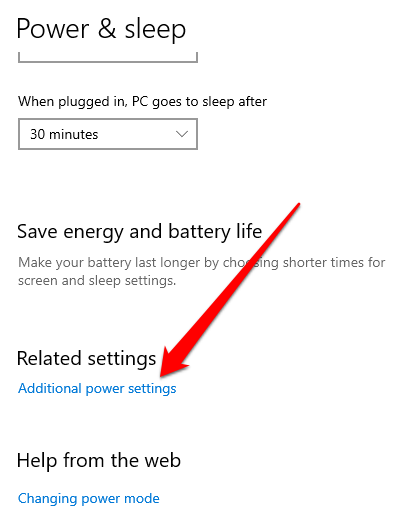 - حدد إعدادات طاقة إضافية .