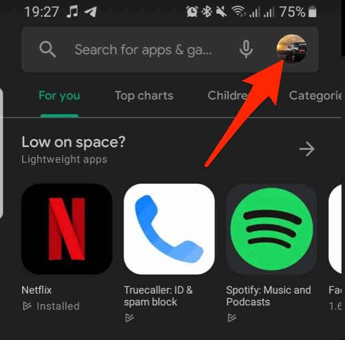 1. افتح متجر Google Play واضغط على صورة ملفك الشخصي .