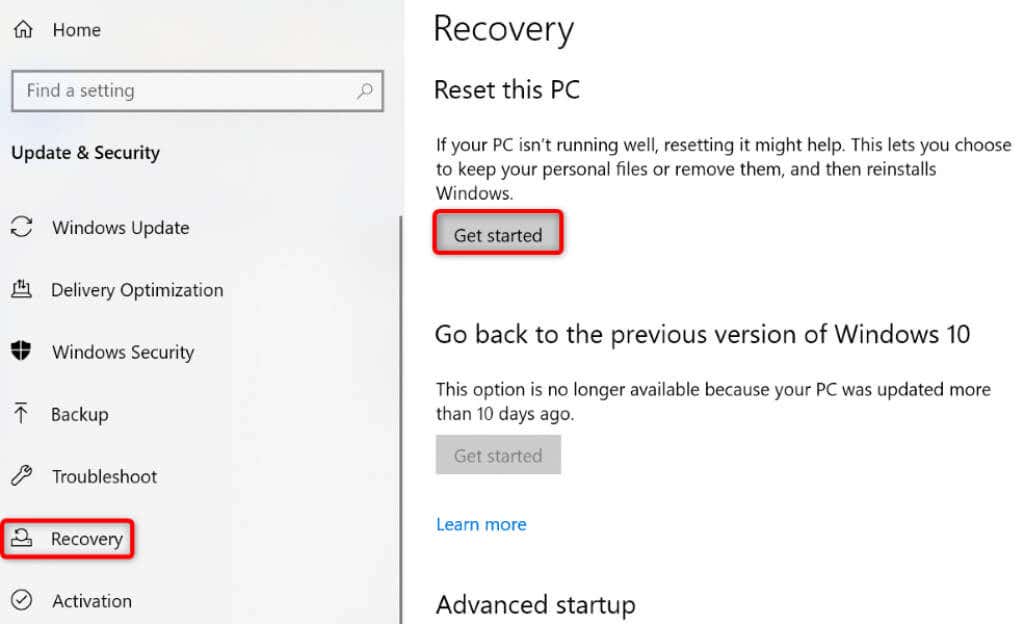 إذا لم يحالفك الحظ في حل المشكلة ، فقم بإعادة تعيين جهاز الكمبيوتر الخاص بك إلى إعدادات المصنع ومعرفة ما إذا كان ذلك سيؤدي إلى حل المشكلة. تؤدي إعادة تعيين جهاز الكمبيوتر الخاص بك إلى إصلاح جميع تكوينات النظام السيئة وإحضار جميع خيارات الإعداد إلى إعدادات المصنع الافتراضية.