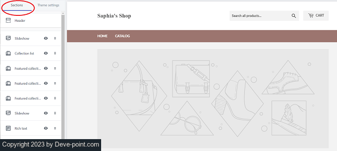 ستجد هذا في علامة التبويب "الأقسام" في الأعلى. يمكنك أن ترى كيف يتغير تخطيط الموقع عند إضافة كل قسم.