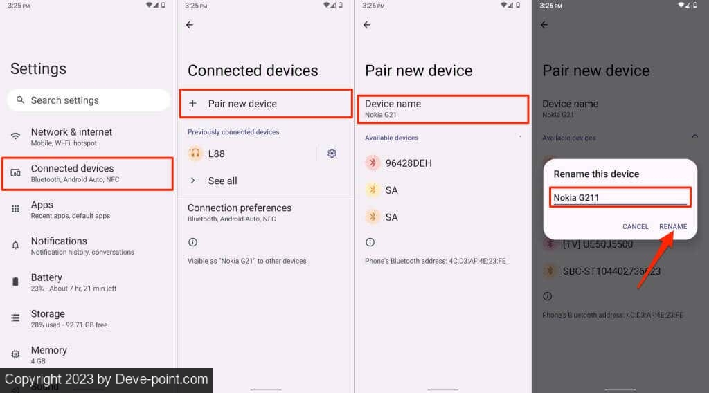 بدلاً من ذلك ، انتقل إلى الإعدادات > الأجهزة المتصلة > تفضيلات الاتصال > Bluetooth وانقر فوق اسم الجهاز لإعادة تسمية هاتفك.