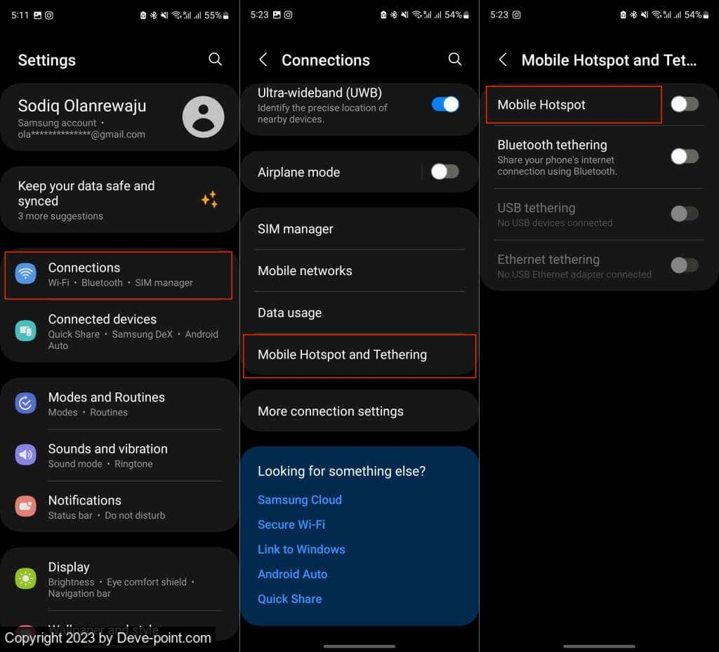 إذا كنت تستخدم نظام Android للمخزون ، فانتقل إلى الإعدادات > الشبكة والإنترنت > نقطة الاتصال والربط وحدد نقطة اتصال Wi-Fi . انقر فوق اسم نقطة الاتصال وأدخل اسمًا جديدًا لنقطة اتصال Wi-Fi بجهازك.
