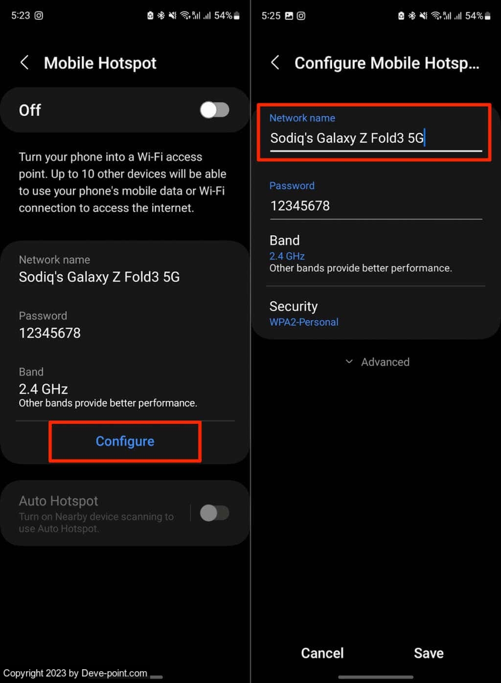 1. انقر فوق تكوين وأدخل اسمًا جديدًا لنقطة اتصال الهاتف المحمول بجهازك في حقل "اسم الشبكة".