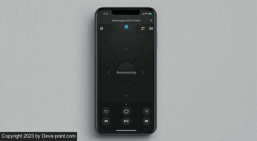 إذا تم سحب الرمز ، فسيعرض تطبيق Fire TV التنقل على الشاشة وعناصر التحكم الأخرى المتوفرة على أجهزة التحكم عن بُعد الخاصة بـ Fire TV الفعلية.