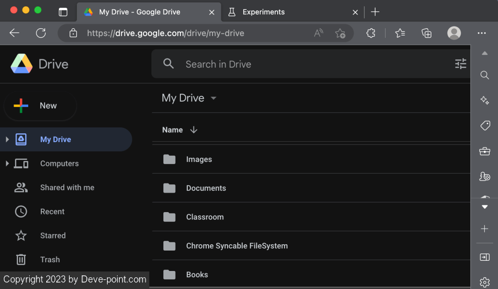 لا يعمل المظهر المظلم الافتراضي لـ Microsoft Edge مع Google Drive ، ولكن الوضع المظلم التجريبي يعمل.
