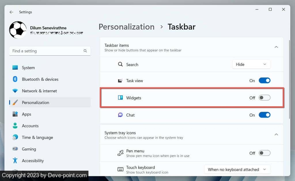 إذا كنت لا تحب رؤية معلومات الطقس على شريط مهام Windows 11 ، فاستمر في تنشيط لوحة الأدوات المصغرة عن طريق الخطأ (قد يؤدي تحريك المؤشر فوقها إلى ظهورها) ، أو العثور على الأخبار داخلها مشتتة للانتباه ، فلديك خيار إزالتها. إليك الطريقة: