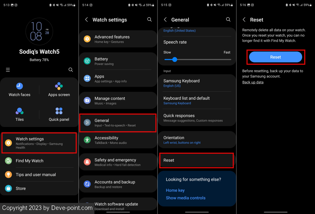 تؤدي إعادة تعيين جالاكسي واتش إلى إعدادات المصنع الافتراضية إلى محو كل شيء على الساعة — التطبيقات والمعلومات الشخصية والبيانات الصحية ، وما إلى ذلك. إذا كنت تقوم بإعادة ضبط Galaxy Watch الخاص بك في المصنع لإصلاح مشكلة ، فإننا نوصي بنسخ بياناتك احتياطيًا أولاً.